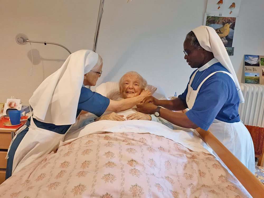 « Aime ton prochain », ou le soin à la personne étrangère, malade ou seule. Ici, les Sœurs Hospitalières de Sainte-Marthe.
