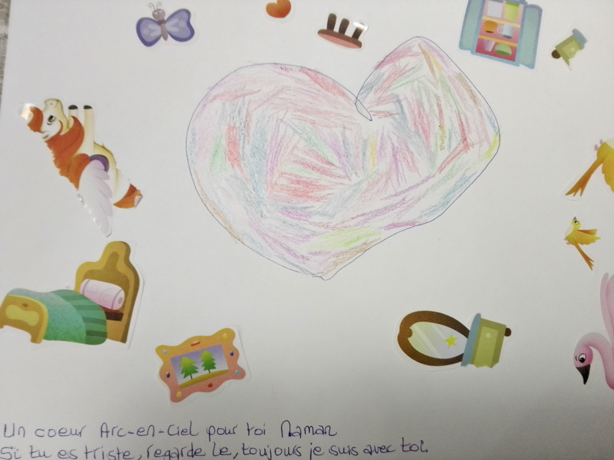 Vous savez, je me bats pour ma fille. Je lui dis : « Tu sais, je ne peux pas t’acheter ceci, cela… » Elle sent que notre situation est compliquée, mais elle a droit à une vie de petite fille… Je ne lui montre pas ma souffrance. Personne n’est au courant de cette galère sauf mes proches, avoue Audrey. Un jour, ma fille m’a dessiné un « cœur d’arc-en-ciel » et me l’a donné en me disant : « Tiens Maman, prends ça au travail et quand tu seras triste, ça va t’aider. » Elle est incroyable !