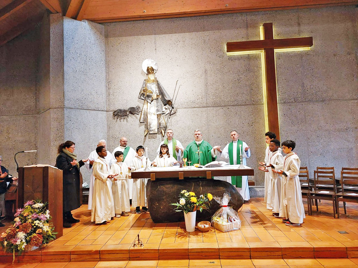 La messe était présidée par les abbés Thierry Schelling, Karol Garbiec, Sviatoslav Horetskyi, entourés d’une ribambelle d’enfants de chœur et accompagnés de la Chorale de Chêne-Thônex ainsi que des membres de l’Equipe pastorale.