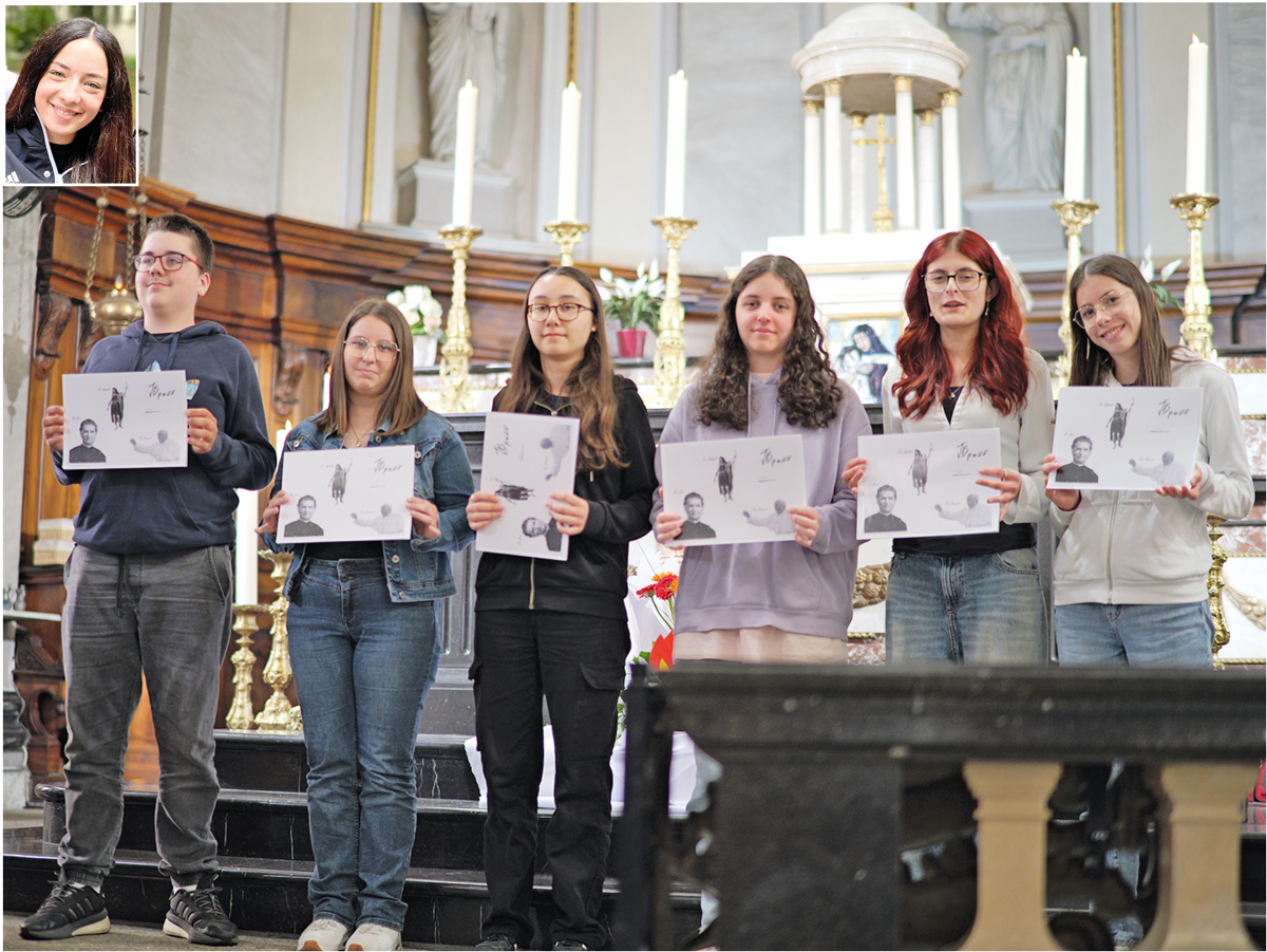 Lors de la messe de la Pentecôte, Aline Jacquier du service diocésain de la jeunesse, est venue pour remettre le diplôme de Jeunes Bénévoles (niveau 1) à sept adolescents de nos paroisses. Durant l’année, ils ont mis les qualités que Dieu leur a données au service des enfants et de nos communautés.