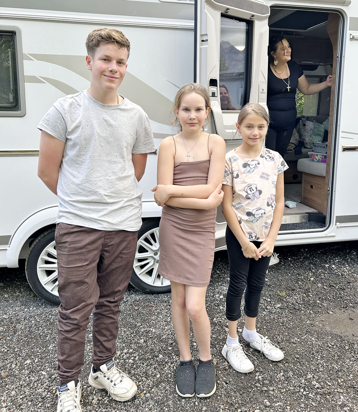 Avec son petit Gianni dans les bras, Brenda nous accueille, rayonnante, à la porte de sa caravane. On admire son bébé, vif et curieux. « Mon petit est né ici, dans la caravane, il y a huit mois. Tout s’est bien passé ! C’est mon troisième enfant. Pour nous, les enfants sont très importants, on veut qu’ils se sentent bien. Ici, entre l’autoroute et le Rhône, ils ne sont pas en sécurité : ça me fait souci !