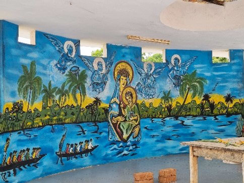 J’accompagne un catéchiste pour des rencontres avec des enfants qui se préparent au baptême, ceci deux fois par semaine en fin de journée, à la sortie de l’école. Leçons très denses pour ces enfants qui doivent tout mémoriser par cœur ! Mais leur vie de foi ne s’arrête pas là. Le jeudi, après le caté, ils participent à l’adoration du Saint-Sacrement et le dimanche ils animent une des messes. Ils s’engagent également le samedi matin pour le nettoyage de la cour, du jardin, des salles et des couloirs de la cure !