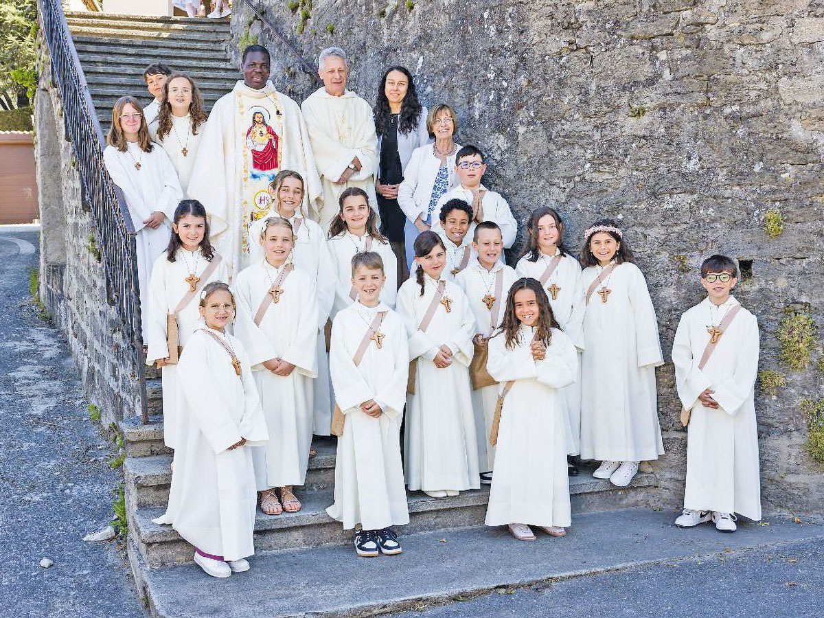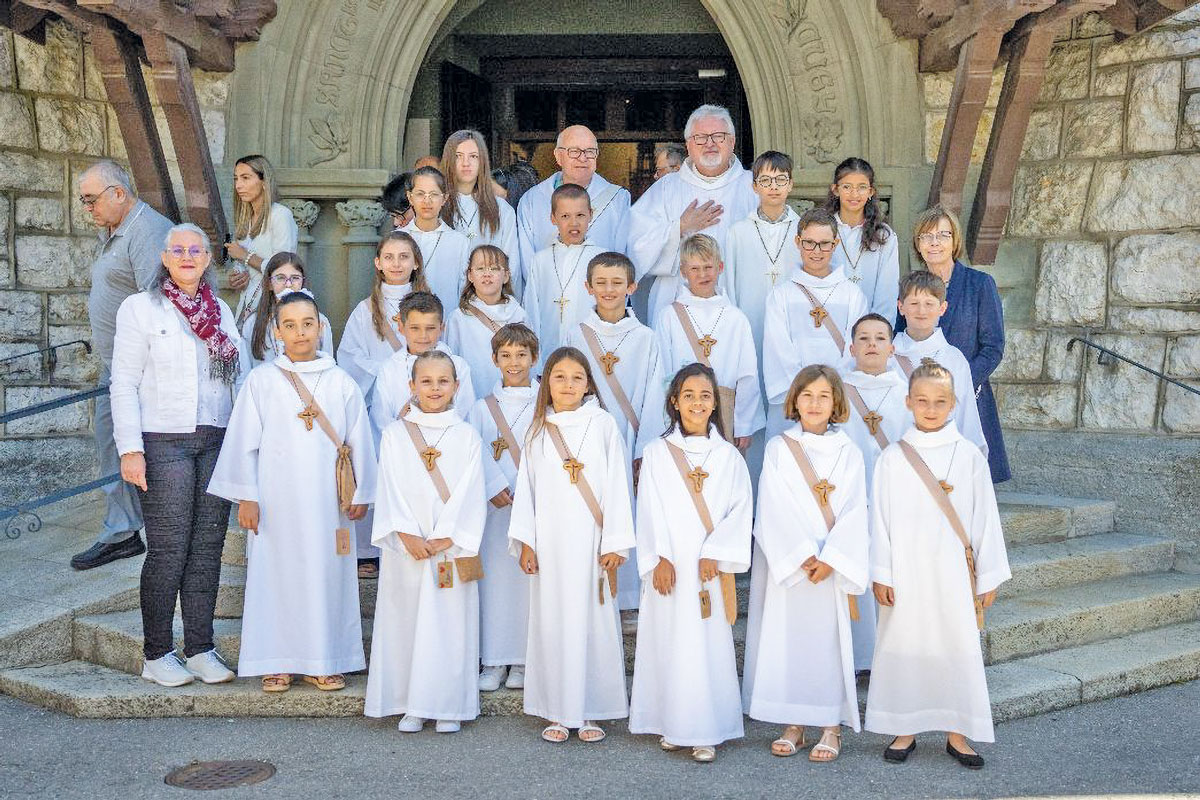 Les premiers communiants d’Estavayer : Aebi Lya, Baranienko Nathan, Barada Maelys, Baudois Adrien, Bauen Giacomo, Bondallaz Elise, Correira Anthony, do Nascimento Ferraz Rafael, Duc Aurélien, Duc Soan, Fays Naomi, Kamgang Ngompsi Roussel, Lacerda Marques Martim, Marmy Paul, Meyer Thibault, Mollard Millie, Monteiro Duarte Mathis, Notarangeli Tino, Pythoud Enoa, Rouvenaz Charleen, Rygner Roksana, Segovia Eva et Tekamgue Kamgang Lionel.