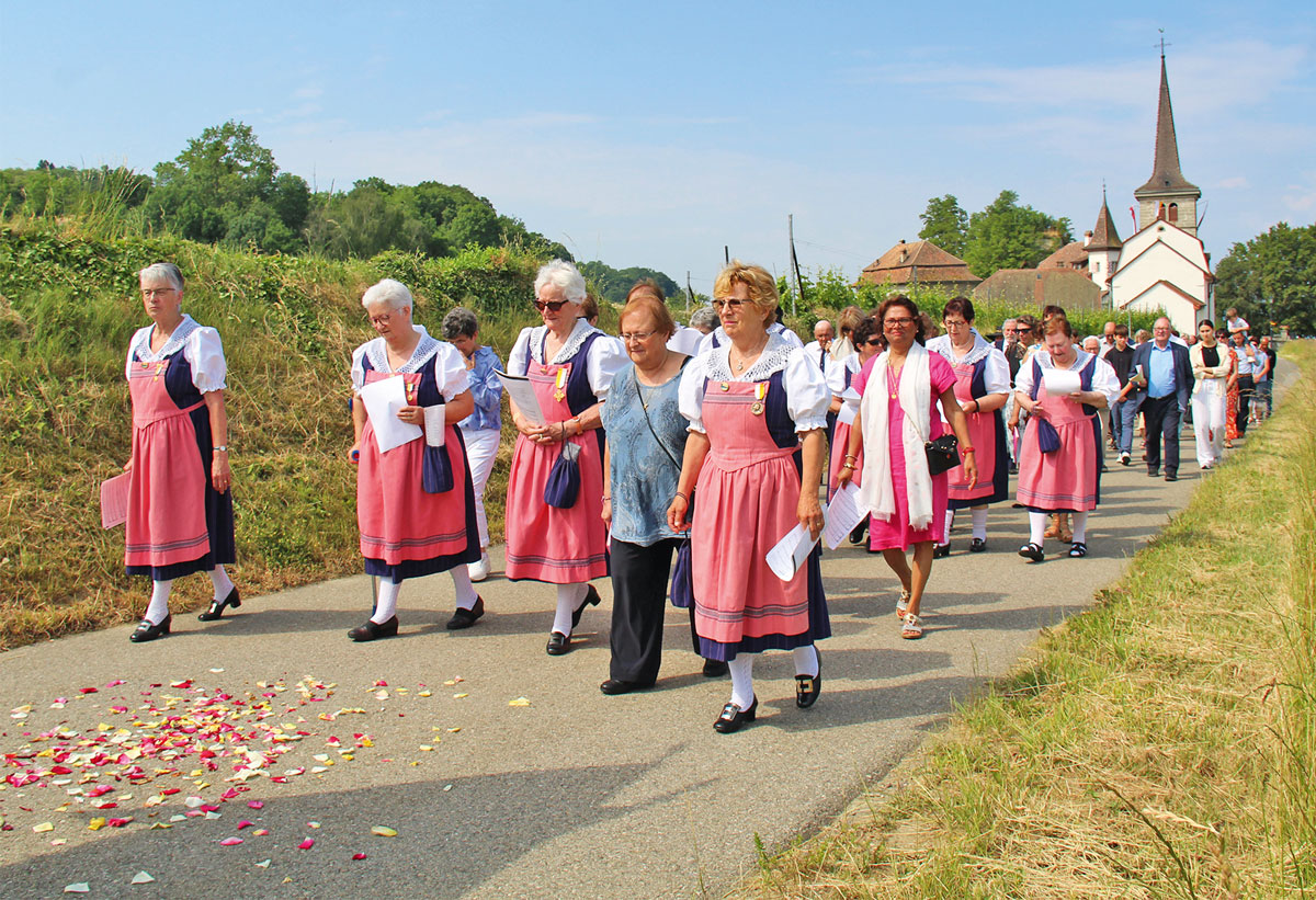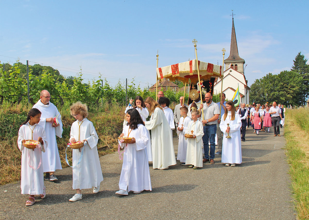 C’est l’abbé Bernard qui a conduit la procession à Font pour la région ouest de la paroisse dans un décor idyllique avec la participation du chœur mixte de Font-Châbles-Cheyres.