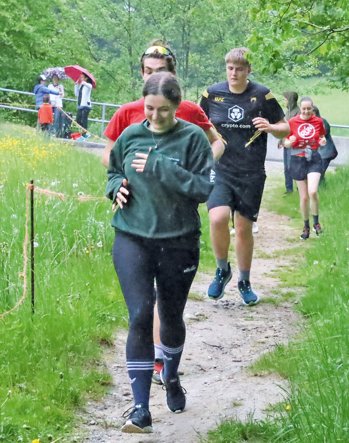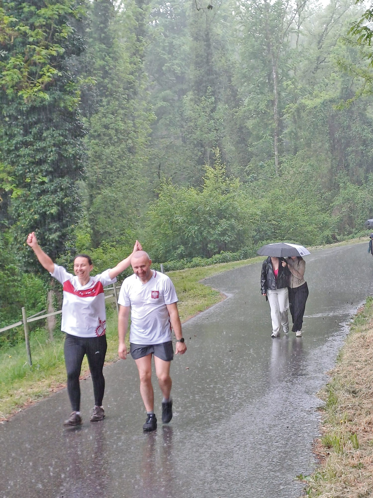 Chez nous, la lumière est arrivée sous la pluie. Un vrai déluge. A la lisière de la forêt, on s’est arrêtés un moment. On regardait le ciel, nos habits trempés et on se demandait si on devait continuer ou attendre. On a checké la météo sur Landi, on a tergiversé, hésité… pendant que les plus jeunes, eux, couraient sans se poser de question, enchaînant les tours avec le sourire. C’est peut-être ça, avoir la foi : avancer même quand on n’est pas sûrs du ciel. Alors on est repartis. On a quitté les arbres et on a franchi la ligne d’arrivée, trempés mais heureux.
