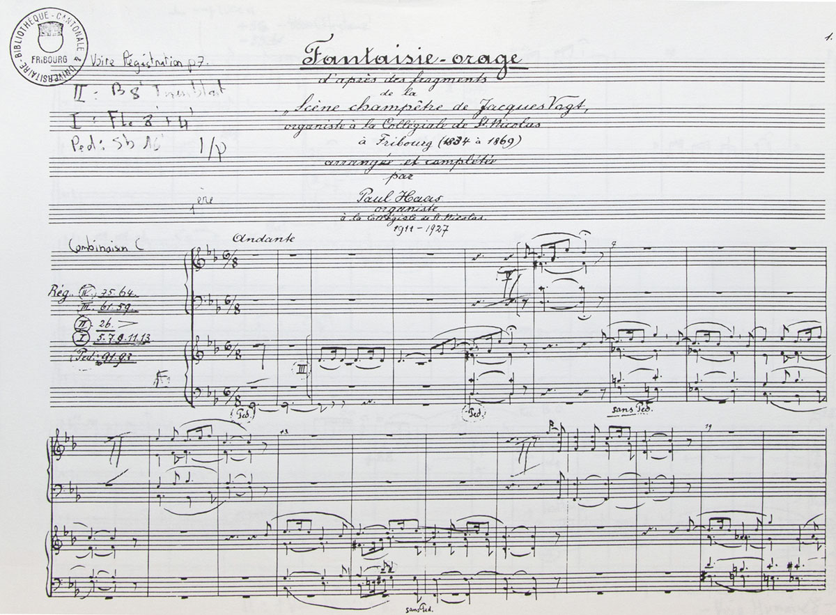 L’événement sera filmé à la tribune et retransmis en vidéo sur grand écran dans l’église, ce qui permettra d’apprécier toute la gestuelle que doit accomplir l’organiste pour rester fidèle à la partition du compositeur bâlois, qui a été organiste titulaire de la cathédrale de Fribourg et qui épata des célébrités – notamment Franz Liszt et George Sand – en l’interprétant sur le grand orgue de Moser. Voici ce qu’a dit George Sand à l’époque : « L’organiste de la cathédrale fit tant des pieds et des mains, et du coude, et du poignet et je crois, des genoux que nous eûmes un orage complet, pluie, vent, grêle, cris lointains, chiens en détresse, prière du voyageur, désastre dans le chalet, piaulement d’enfants épouvantés, clochettes de vaches perdues, fracas de la foudre, craquement des sapins, dévastation des pommes de terre »…