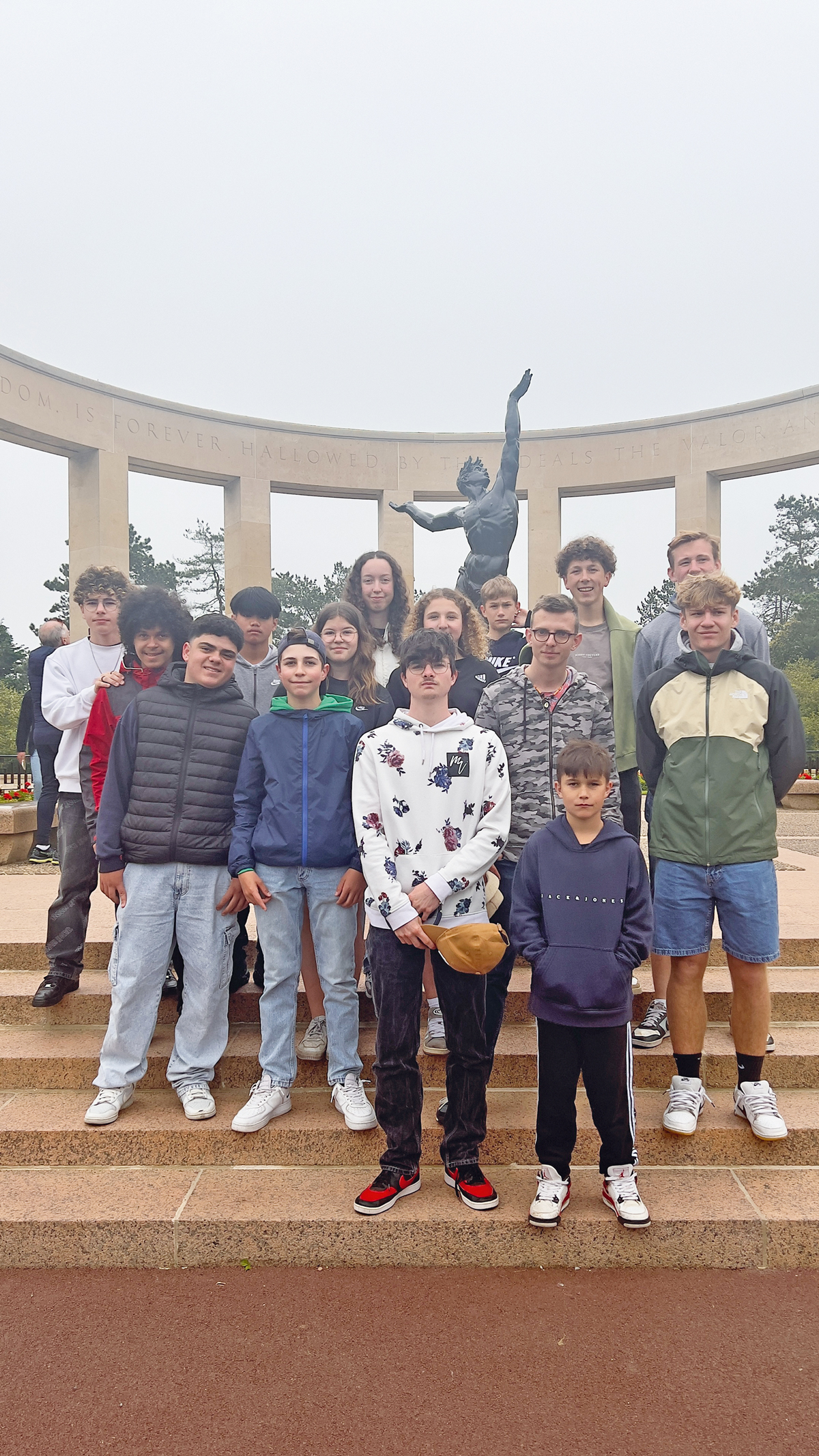 « Ce week-end était merveilleux, vraiment ! Merci énormément à la paroisse et à toutes les personnes grâce à qui ce voyage a été possible. Nous avons marché sur les pas de pèlerins et ceux des soldats qui ont sauvé la France. La marche en direction du Mont-Saint-Michel s’est passée sans problème avec une guide de très bonne humeur qui nous rendait attentifs à tout l’environnement. Avec ces paysages à perte de vue, les bâtiments en pierre, ces vestiges de l’époque, comme les véhicules à Gold Beach. Encore une chose : la basilique de Lisieux, c’était un endroit que je ne connaissais pas, mais j’y retournerai, c’était tellement impressionnant. En bref, ce voyage était incroyable, alors juste merci ! »