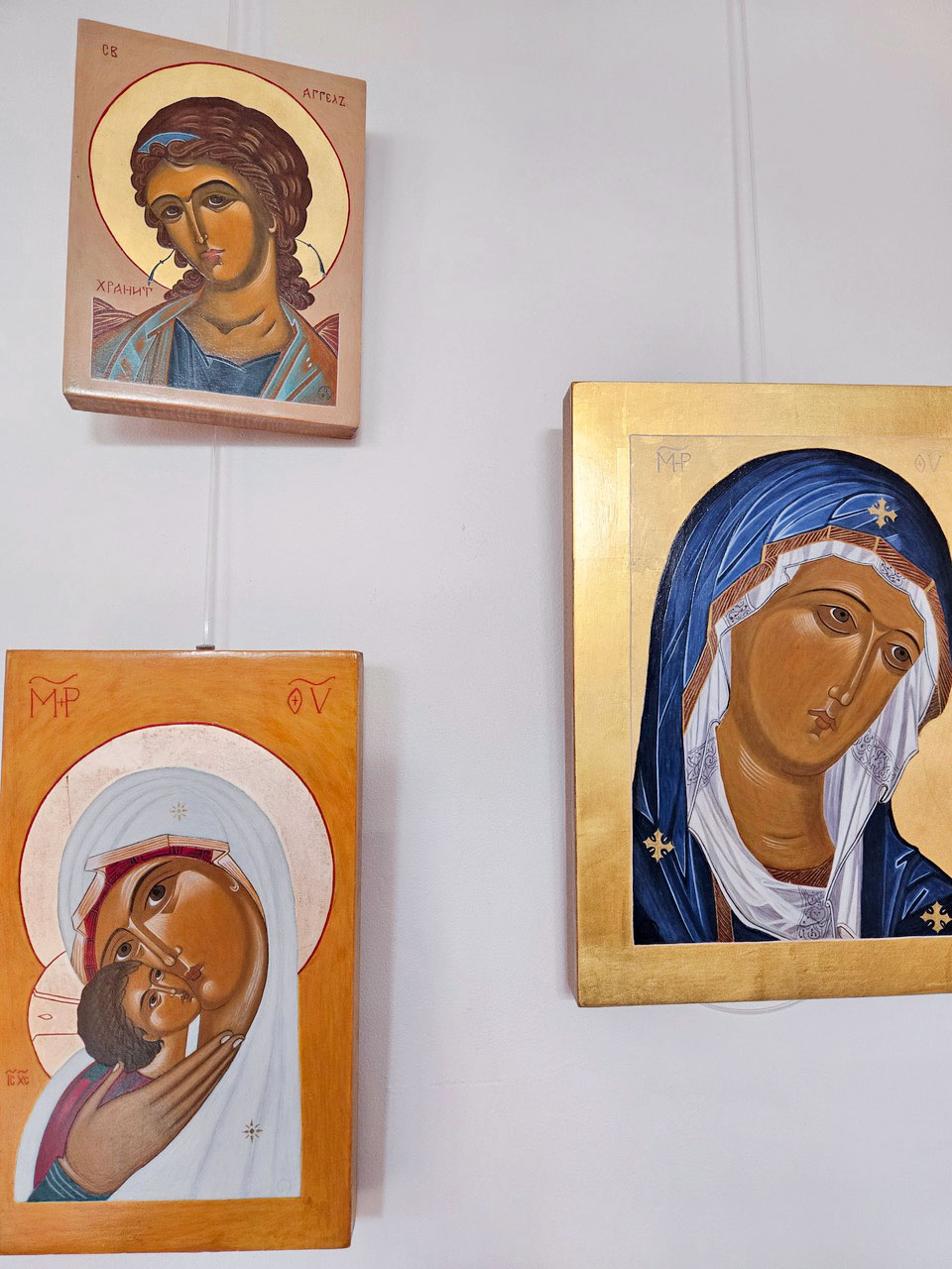 Ange gardien et deux Vierges.T. Dysli travaillant sur l’icône « La Création ».Christ en Gloire, Apocalypse saint Jean.