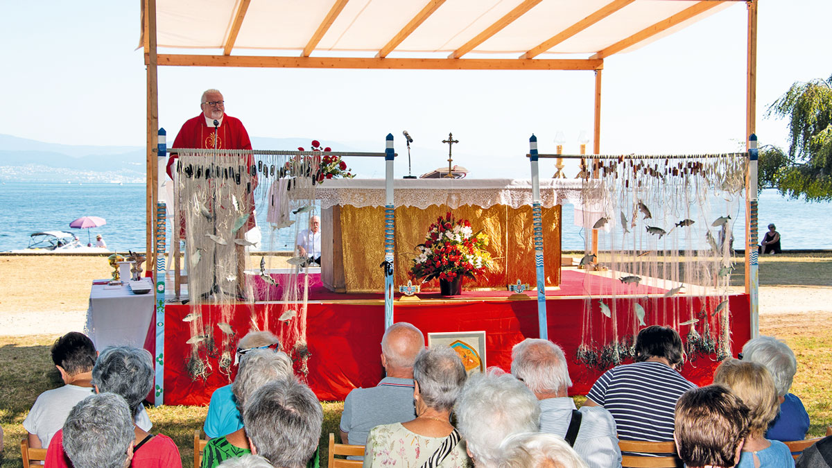 La célébration en plein air face au lac a été suivie par une belle assistance.