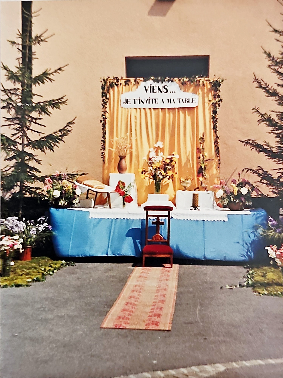 La Fête-Dieu, je la vis depuis que je suis tout petit ! Les gens jouaient le jeu et lors de la procession, tous les balcons et les parterres du village étaient fleuris. Tout le village ou presque était là et cette fête annuelle permettait de se retrouver !