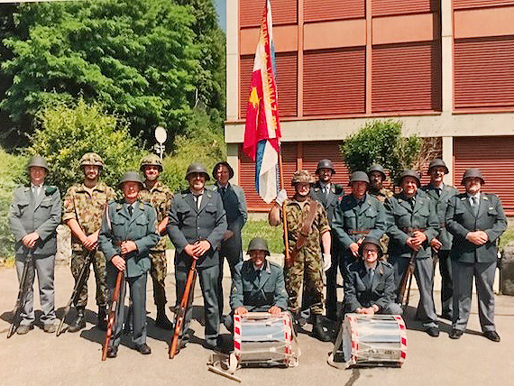 La Fête-Dieu est une journée de partage et de rencontre primordiale pour la communauté de Vouvry. Ça remonte à l’enfance, j’y suis venu comme servant de messe, puis apôtre, puis croisé. Je m’étais toujours dit qu’après mon service je participerai à la parade. La parade doit donc être digne et crédible, nous ne sommes pas là pour faire du folklore. J’en suis l’intendant. Depuis 1985 je tiens le registre où j’y consigne les signatures des militaires présents, des photos, les statistiques de fidélité, les missions spéciales comme porte-drapeau. Personnellement je suis très fier d’accompagner le Saint Sacrement.