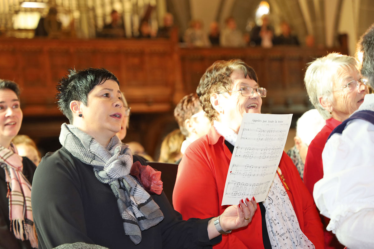 Le dimanche, tous les membres des chorales et une nombreuse assistance étaient réunis en l’église de Cugy pour la traditionnelle messe des Céciliennes. Une prestation d’ensemble avec un répertoire dans lequel les chœurs mixtes d’église sont à l’aise. Pour cette messe présidée par l’abbé Bernard, c’est la « Messe de Saint-Bernard » de Geneviève Moullet-Murith que l’ensemble des chorales a interprétée avec une direction tournante. Une formule qui n’était peut-être pas la meilleure, tant il n’est pas évident de tirer le meilleur d’un groupe de plus de 200 voix !