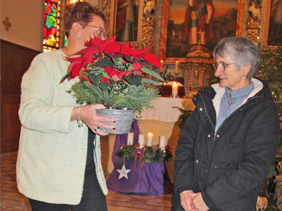 Le 8 décembre dernier, fête de l’Immaculée Conception, Mme Sophie Delpedro, présidente du Conseil de communauté de Nuvilly, a adressé un chaleureux remerciement à Mme Véronique Christinaz, qui quitte son mandat après 25 ans de fidèle présence au sein du Conseil paroissial.