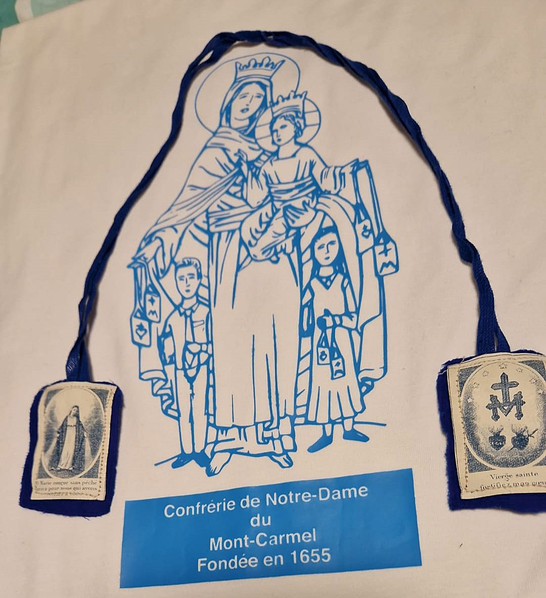 Le scapulaire de Notre-Dame du Mont-Carmel (également appelé scapulaire carmélitain) est une pièce de vêtement que portent les membres de l’ordre du Carmel. Ce scapulaire existe également sous une forme très réduite, et porté par les laïcs. Cette dévotion apparait à la fin du XIIIe siècle chez les carmes et se répand chez les laïcs autour du XVe siècle.