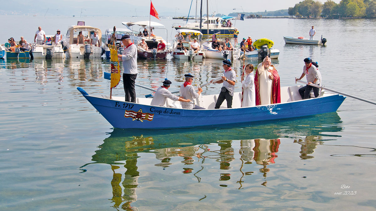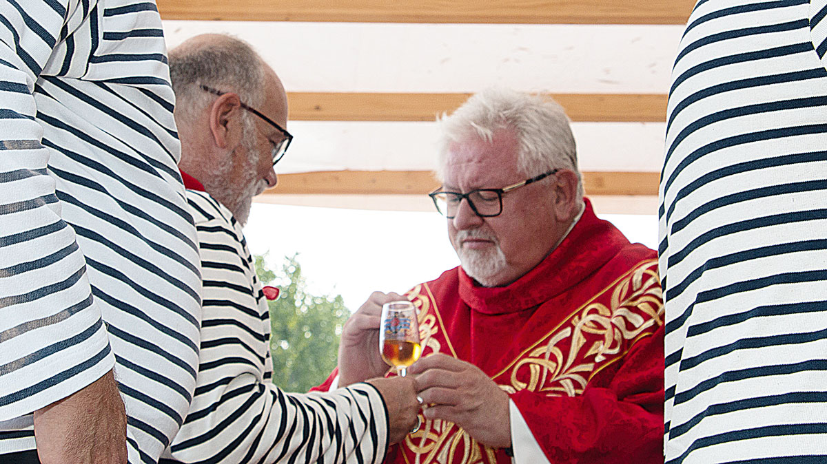 L’intronisation du nouvel aumônier, l’abbé Darius Kapinski, curé de la paroisse Saint-Laurent Estavayer.La bénédiction des embarcations sur le lac.