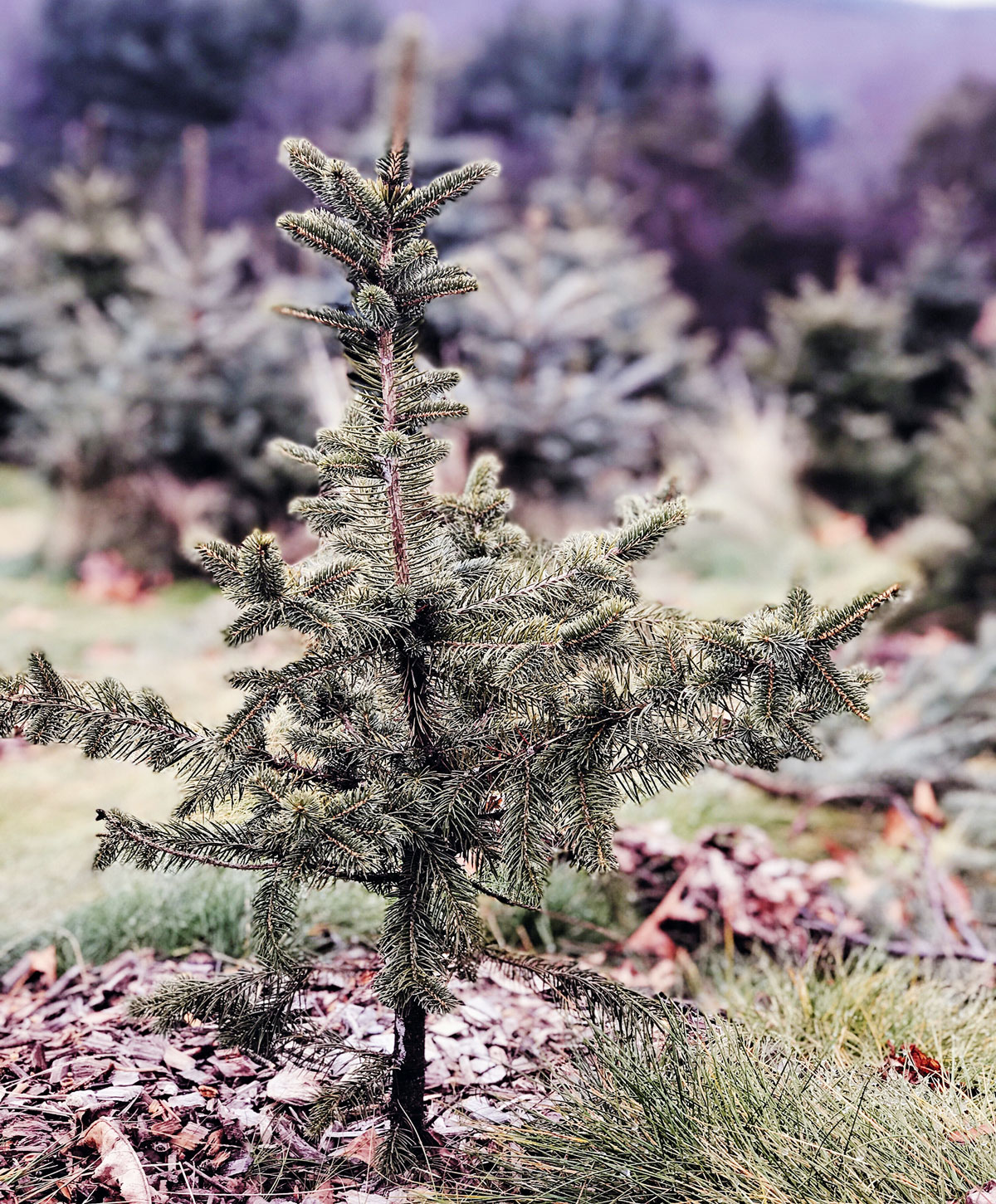 Tout à coup le petit garçon cria en l’apercevant : « Papa, papa, regarde ici, en voilà un joli, pas trop grand, bien régulier ! » Et le papa jugea lui aussi qu’il ferait un gentil arbre de Noël qui, en apportant dans ses branches le parfum de la forêt, procurerait un immense plaisir à sa sœur, perdue là-bas, au fond du Maroc. Alors, s’armant de son couteau, il trancha le pied du pauvre petit sapin. L’homme mit le sapin sous sa veste et revint à la maison comme en cachette, par les raccourcis (car il est défendu de couper les petits sapins).