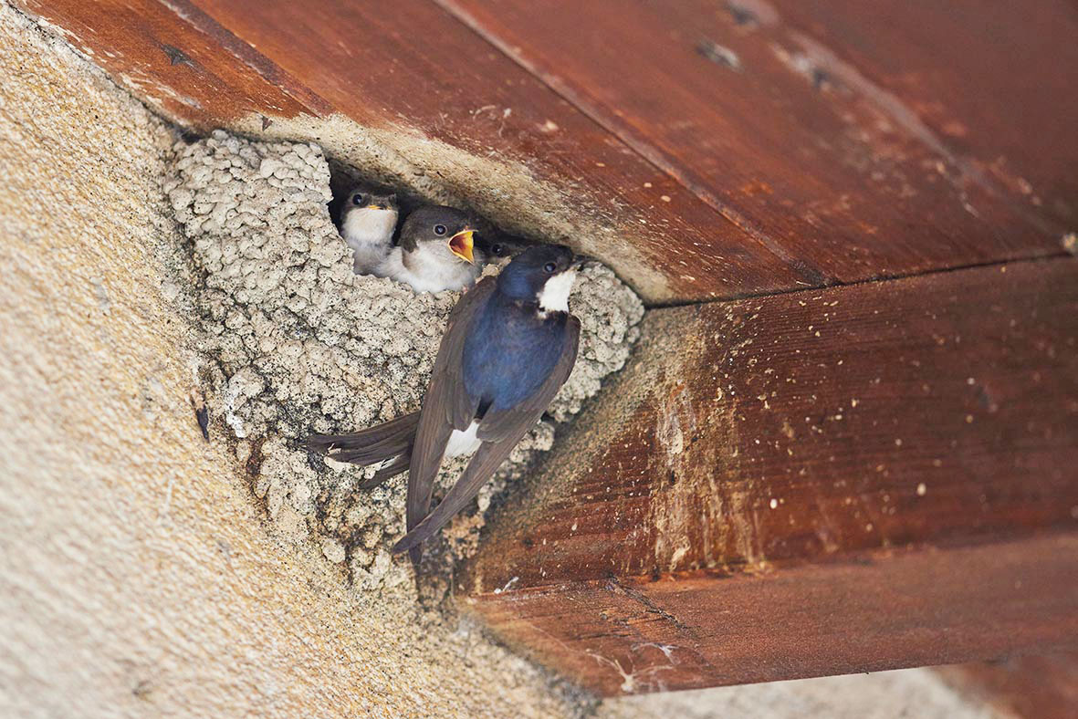 Quant aux hirondelles de fenêtre, elles construisent des nids moins discrets, à même les façades. Elles récoltent de la terre dans leur bec, forment des boules avec leur salive et maçonnent ainsi des nids. Les salissures occasionnées peuvent déplaire aux habitants.