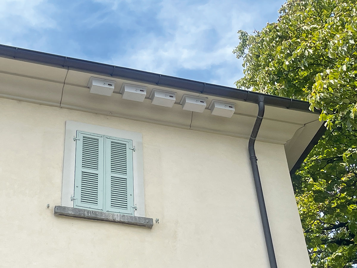 Cinq nichoirs à martinets sur la Maison de la Congrégration du Grand-Saint-Bernard.