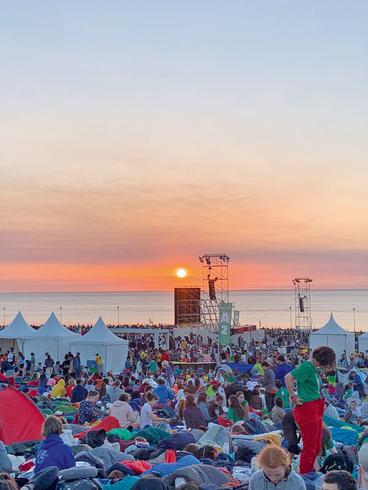 La troisième semaine à Lisbonne était encore différente. Le climat change, nous découvrons l’océan. Les déplacements dans la ville se faisaient en train ou en bus. Il y avait énormément de jeunes provenant de tous les pays. Ce fut également un moment très marquant : aller à la rencontre de 1,5 million de jeunes provenant de cultures différentes mais partageant la même foi, vivre des messes en plein centre de Lisbonne avec une foule de jeunes qui s’étendait à l’infini, rencontrer le Pape et écouter sa parole, se faire de nouveaux amis.