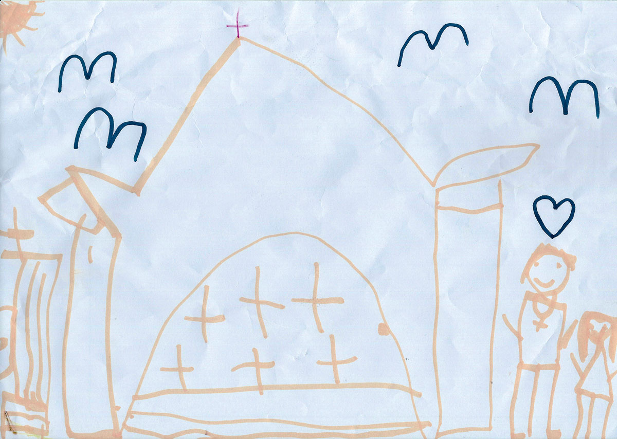 Un long moment après : – Est-ce qu’il y a une clé à cette boîte ? – Non… Il n’y a pas de clé, simplement un couvercle. – C’est comme une boîte de Dieu ? (un tabernacle, je suppose…) – Non… Euh… oui, un peu… – Elle n’est pas grande la boîte… – Non… – Elle est posée sur quoi ? – Sur une sorte de table…