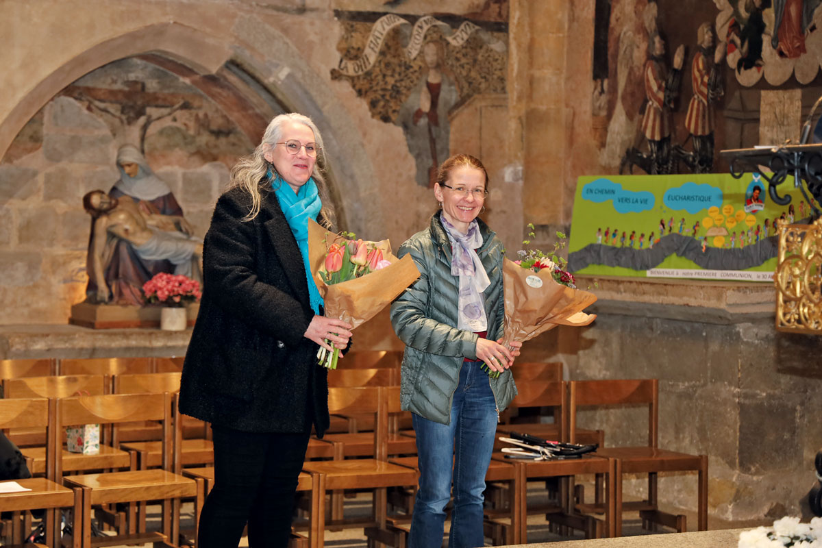 Mme Rafaëlle Mascaro et Mme Nicole Monnard, auxiliaire pastorale, fleuries pour leur dévouement.
