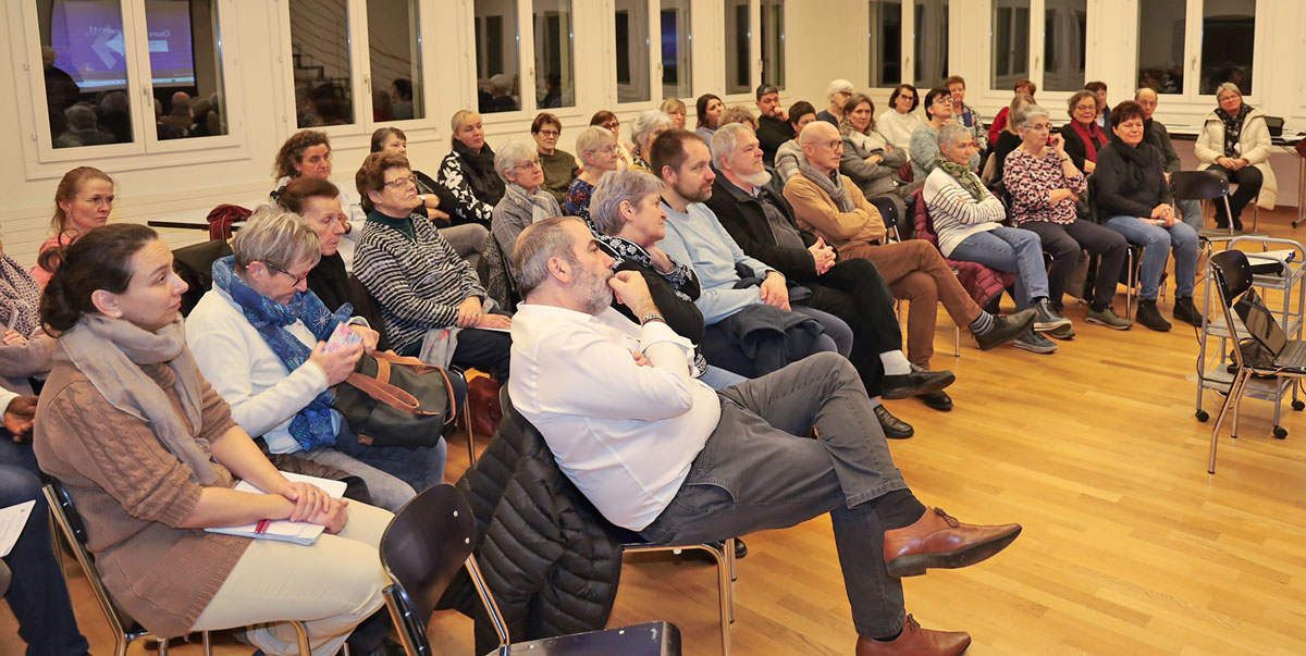 Ce travail de réflexion s’est poursuivi en soirée, à Seiry pour notre paroisse. Les bénévoles étaient invités à se retrouver afin de discerner de manière communautaire. Par petits groupes, les participants ont vécu la conversation dans l’Esprit. En partant du récit de la pêche miraculeuse (Luc 5, 1-11), ils ont partagé ce que cette Parole faisait résonner en eux, simplement en s’écoutant sans commenter les interventions des personnes. Ils ont ensuite essayé de définir trois initiatives dans lesquelles s’investir ensemble pour donner du dynamisme missionnaire. Les thématiques, fruits de la réflexion et du discernement des agents pastoraux et des bénévoles, ont été communiquées aux responsables de la session diocésaine.